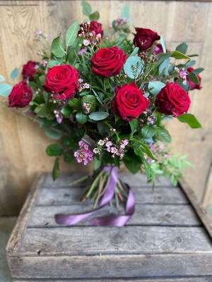 Our signature classic red roses made even more special. Tied with a selection of sumptuous luxury foliages. They are so romantic, they definitely qualify as a Valentine's Day treat. Packed in biodegradable cello and beautifully presented in gift bag.