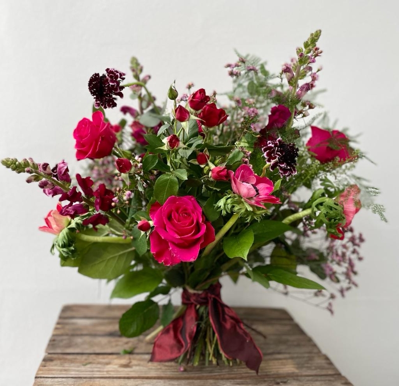 A stunning, vintage-inspired selection designed for those who believe in hopeless romance. Moving away from the traditional all-red rose, Valentina blends a dreamy palette of deep reds and soft pinks with textured seasonal foliages. It is a hopelessly romantic, hand-tied bouquet that captures a timeless, "just picked from the garden" elegance. Perfectly presented in our signature eco-friendly gift wrap, it’s a gorgeous alternative for your special someone this season.